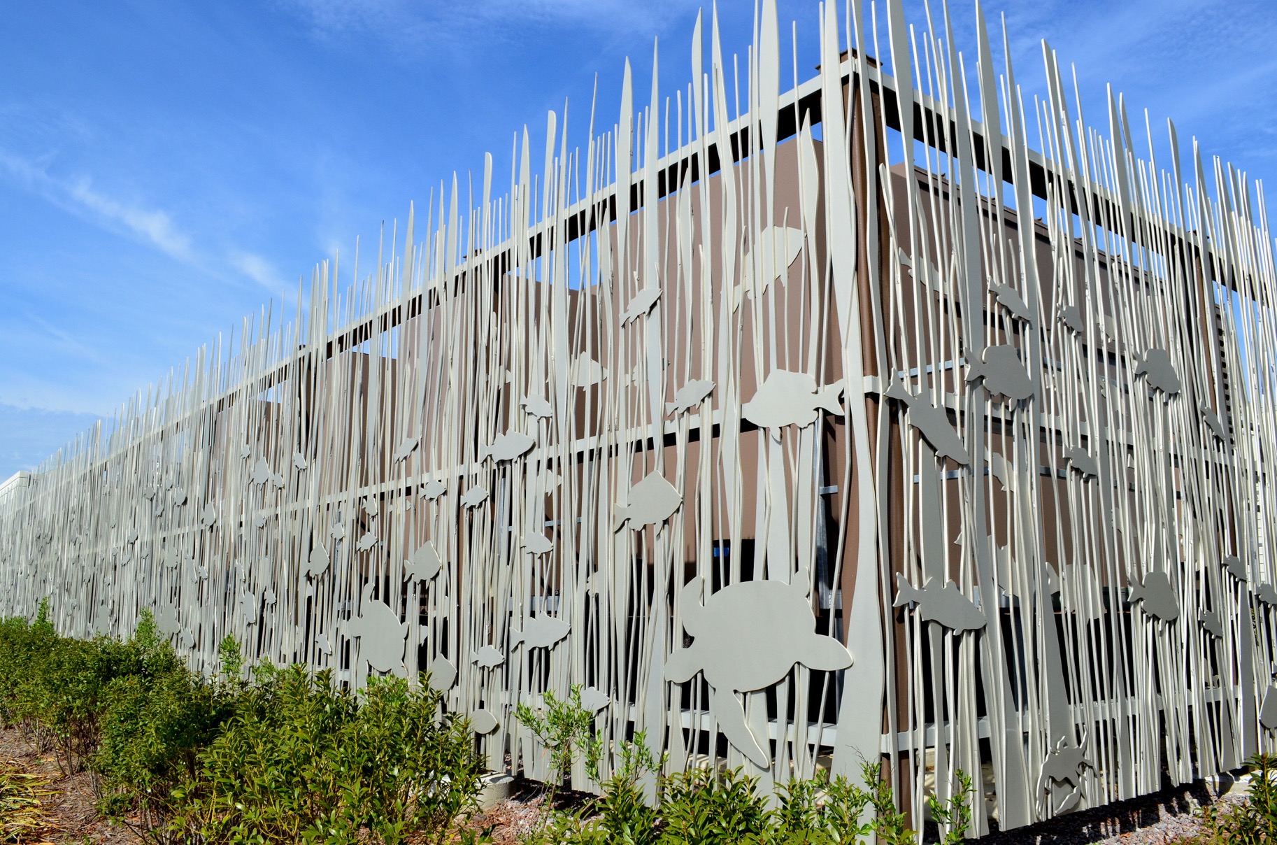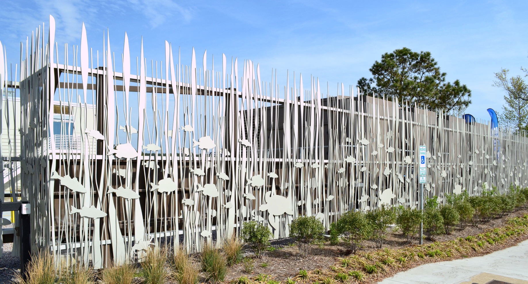 This work was completed at the Virginia Aquarium & Marine Science center and included over 1,500 CNC-cut pieces of grass, sticks and sea life.